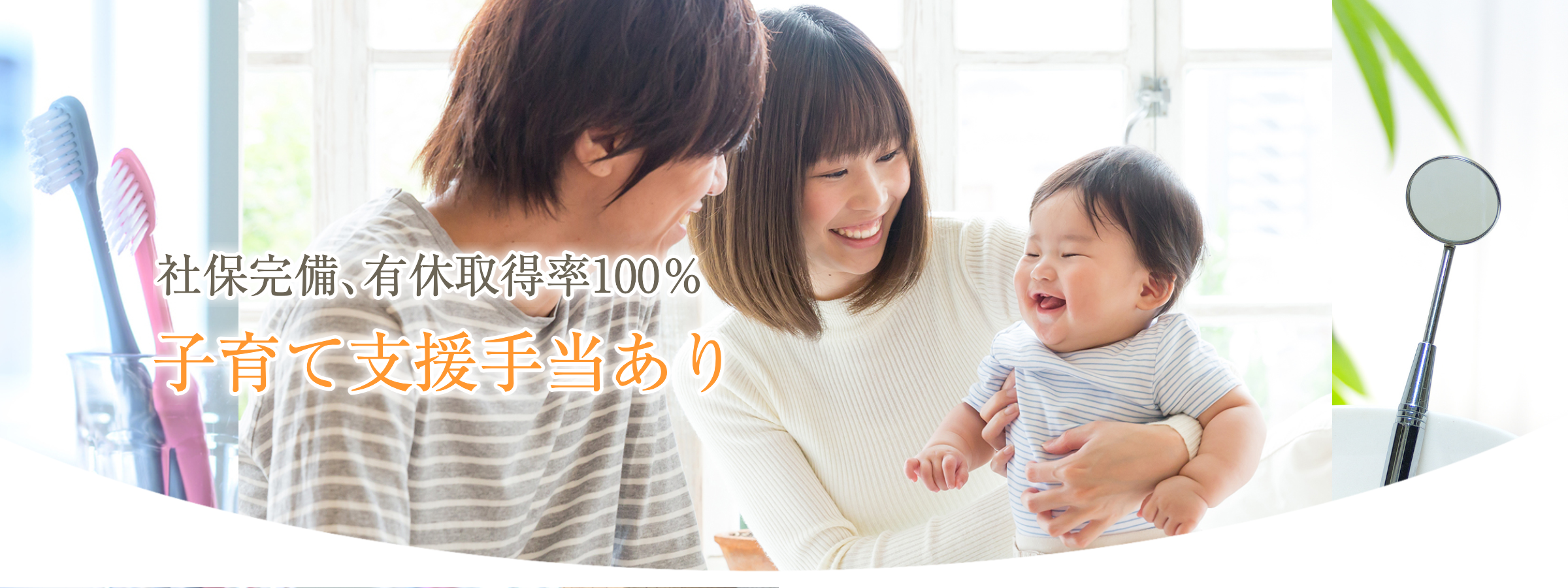 一般的な歯科医院よりもお休みが多めで、年間休日は130日以上。有休取得率が100%のスタッフが多数おり、休暇を有意義に過ごせます。ぜひワークライフバランスのとれた日々をお過ごしください。