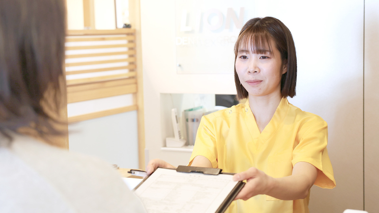 また当院では、歯科助手の方に受付も担当いただいております。診療補助の傍ら、電話対応や予約管理などの業務をお任せします。予約から受付、そして診療まで一貫して患者さまと関われるため、やりがいを持って働ける環境です。ぜひ、患者さまをお迎えする「医院の顔」としてご活躍いただきたいと思います。